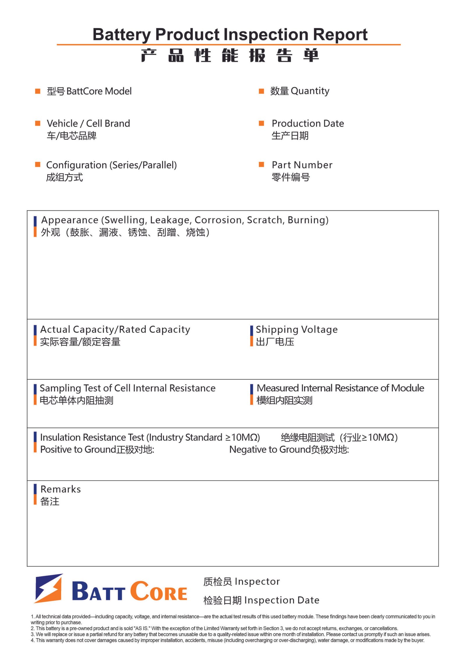 Battcore supplies EV batteries to repair workshops worldwide. We offer high-quality original used batteries and reliable aftermarket solutions, with every battery inspected before shipment and supported by detailed performance reports.