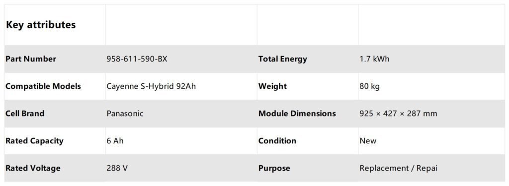 Porsche Cayenne/Panamera S-hybrid 92AH High-Voltage Battery Pack